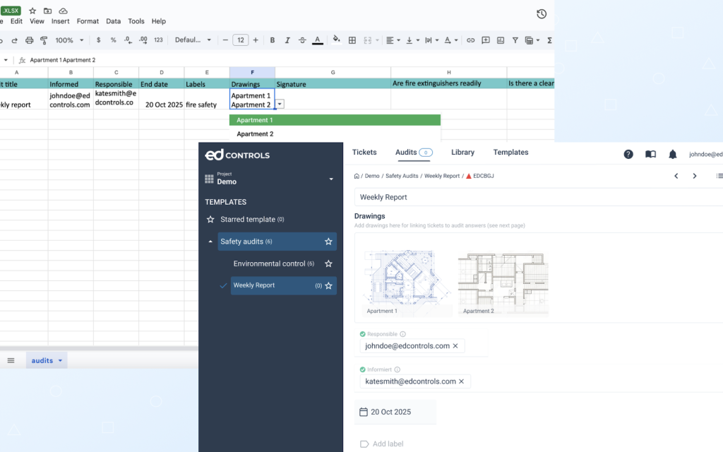 This was a frequently requested feature: when uploading audits via Excel, you can now select multiple drawings at once. Previously, you had to manually add additional drawings to each audit after uploading, which took time and clicking.